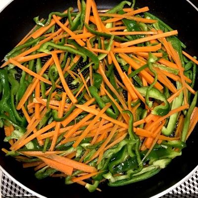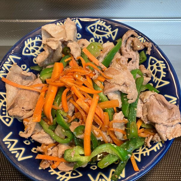 ごま油香る♪豚肉とピーマンと人参の甘辛炒め^_^。