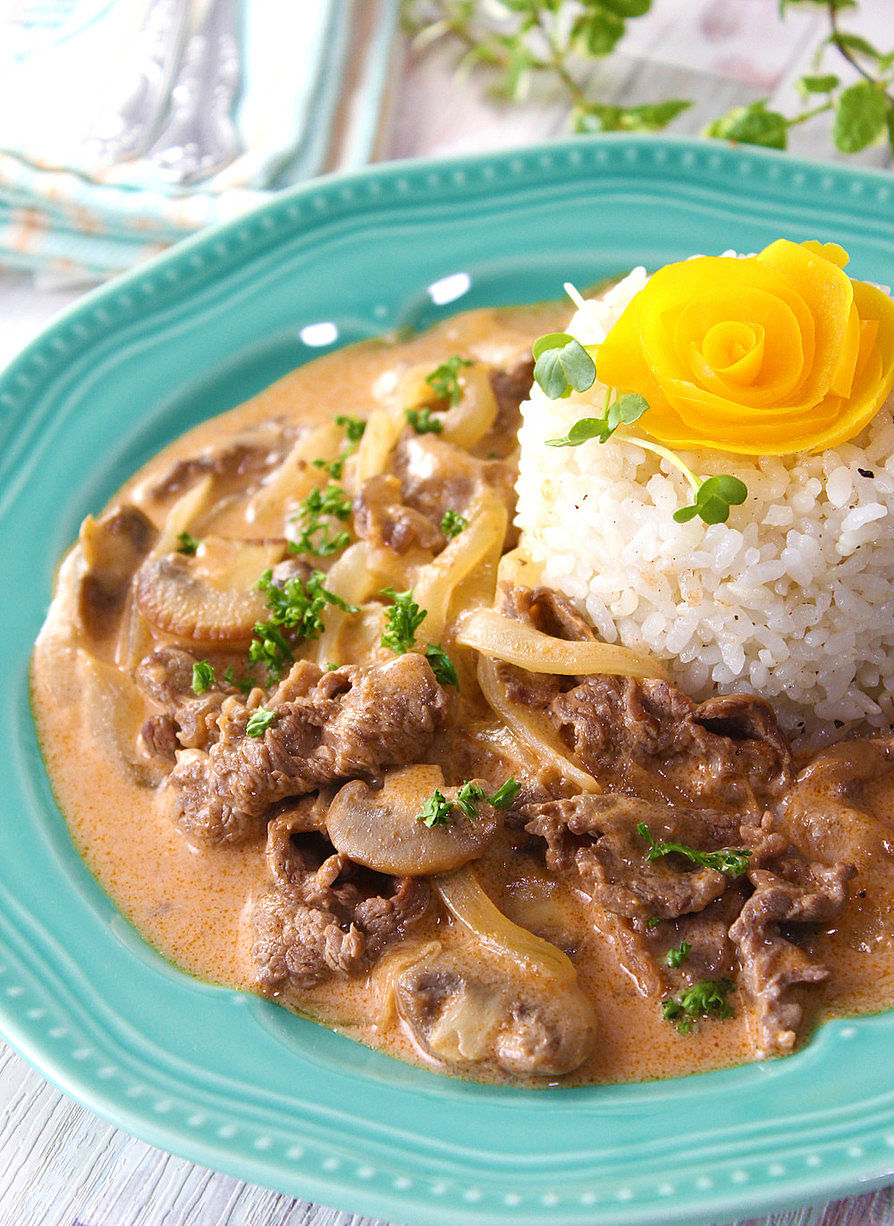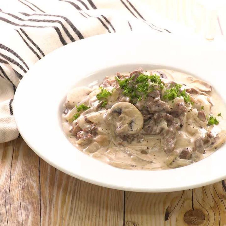 濃厚なコクが楽しめる♪ ご馳走ビーフストロガノフ。