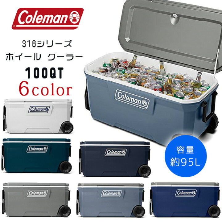 楽天市場在庫有り クーラーボックス 大型 コールマン 316シリーズ ホイール クーラー 100QT 容量約95L キャスター付き キャンプバーベキュー 保冷力 大容量 大型 アウトドア キャンプ バーベキュー ビーチ ボート 釣り Coleman 316 Series 100-QuartWheeled Cooler。