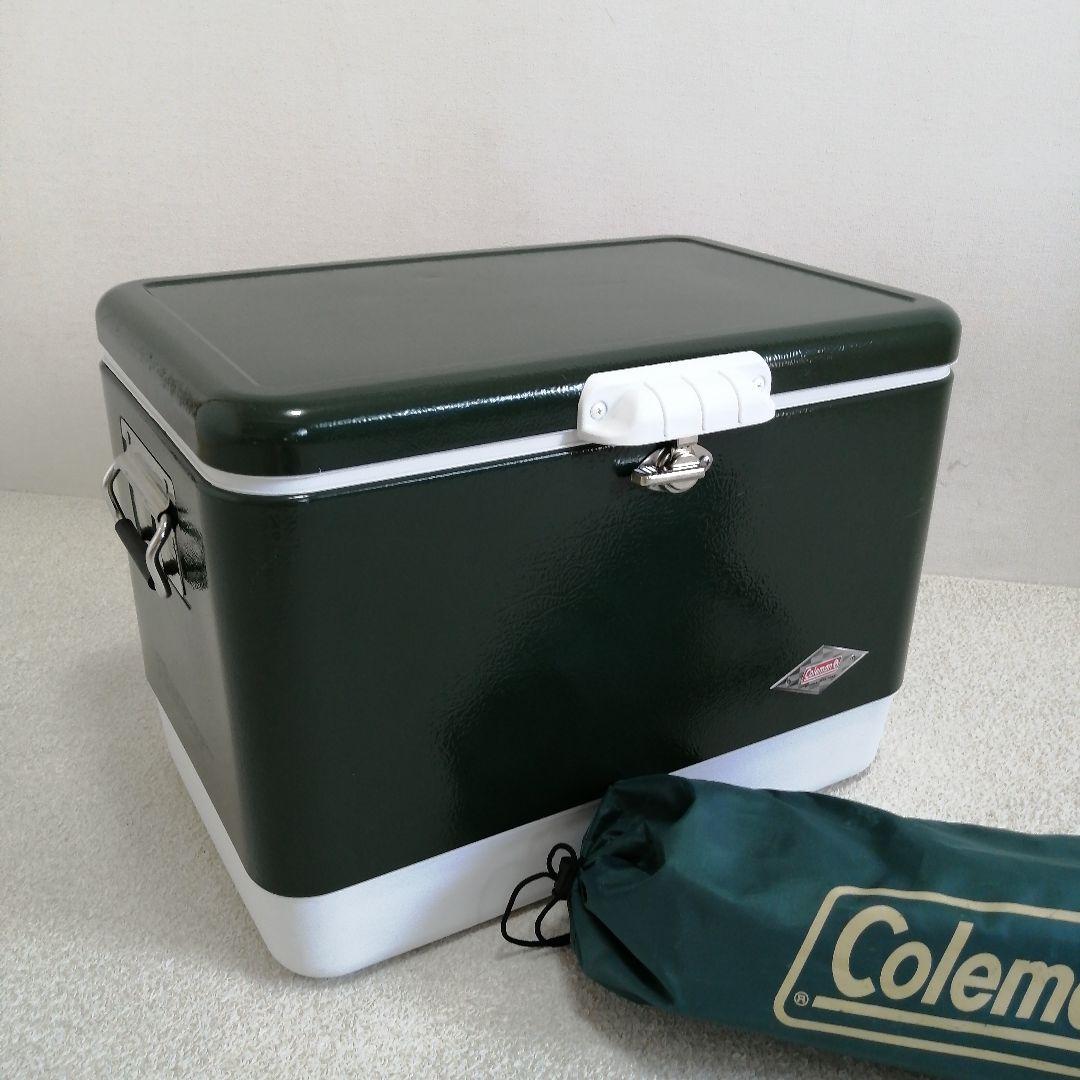 カスタム コールマン クーラーボックス 54QTスチールベルトクーラー シルバー 50L~。
