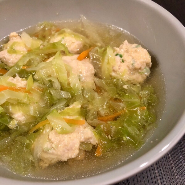 やみつき!鶏キャベやみつきごまスープ材料鶏もも肉300g キャベツ2~3枚 水400ml 鶏がらスープの素大さじ1 醤油小さじ1白だし小さじ1 みりん小さじ2 ごま油小さじ1 ラー油小さじ1 白ごま適量 黒胡椒適量作り方①鶏もも肉、キャベツを食べやすい大きさに切る ②鍋に水、鶏がらスープの素、醬油、白だし、みりんを混ぜて温まったら鶏肉、キャベツを加える。