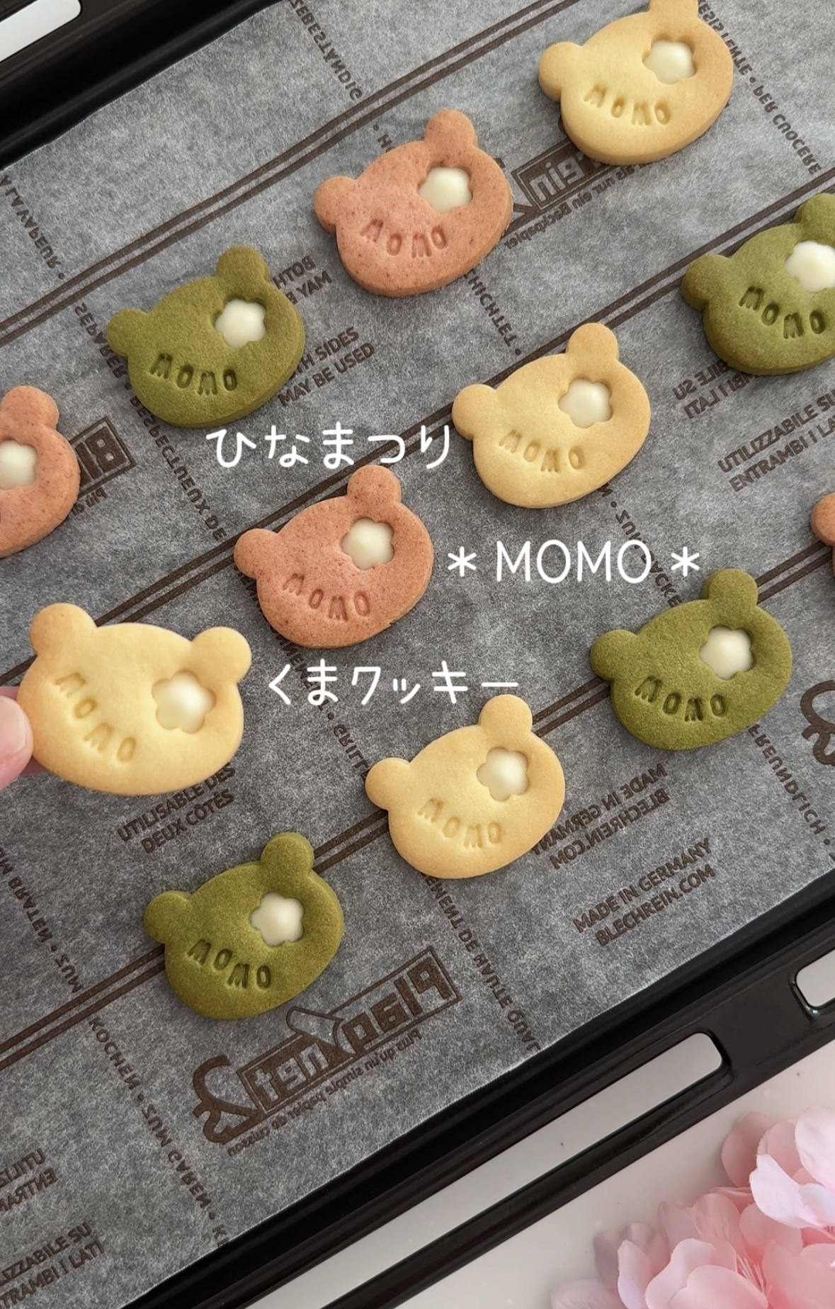 レシピ ひなまつりくまクッキー♡簡単3色クッキーの作り方紹介♡さくさく美味しいクッキーレシピだよ!チョリーナ チョコ島。