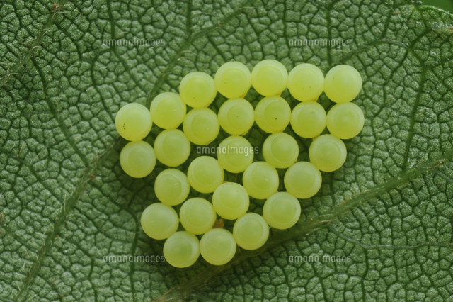 クサギカメムシ リョウブの葉裏に産みつけられた卵 32127000355 の写真・イラスト素材アマナイメージズ。