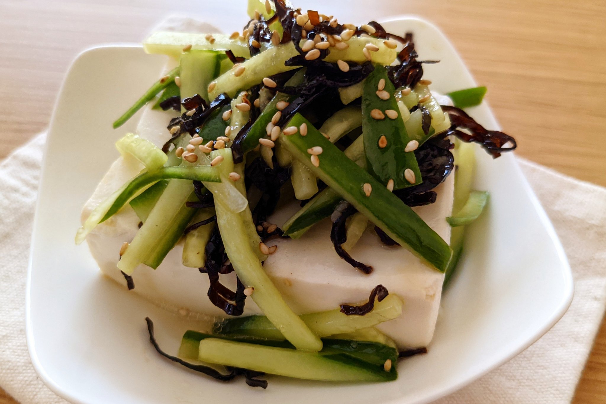 ハマごはん お手軽レシピon X: " きゅうりと塩昆布のごま油冷奴①きゅうりを細切りにカットする ②袋にきゅうり、塩昆布、ごま油を入れて10分おく③豆腐の上に②をのせて白ごまを振って完成! https:t.co 4G3DmY0cHC"X。