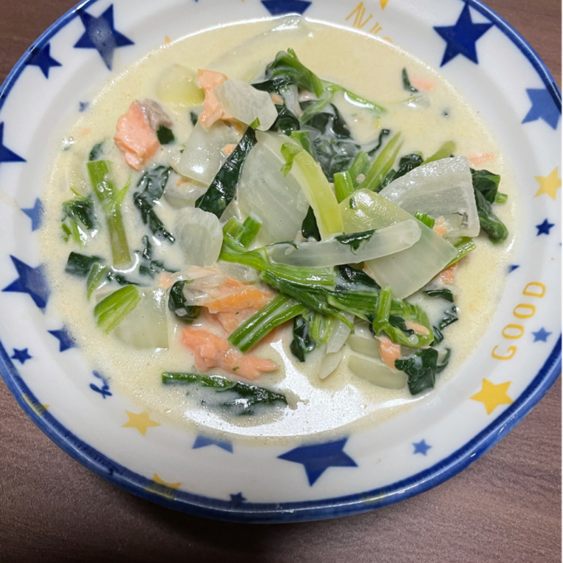 大根とほうれん草の洋風 炒めの献立 副菜:トマトとモッツァレラのバジルマヨネーズサラダ、汁物:かぼちゃのクリーミースープ 献立・メニュー 味の素パーク たべる楽しさを、もっと。