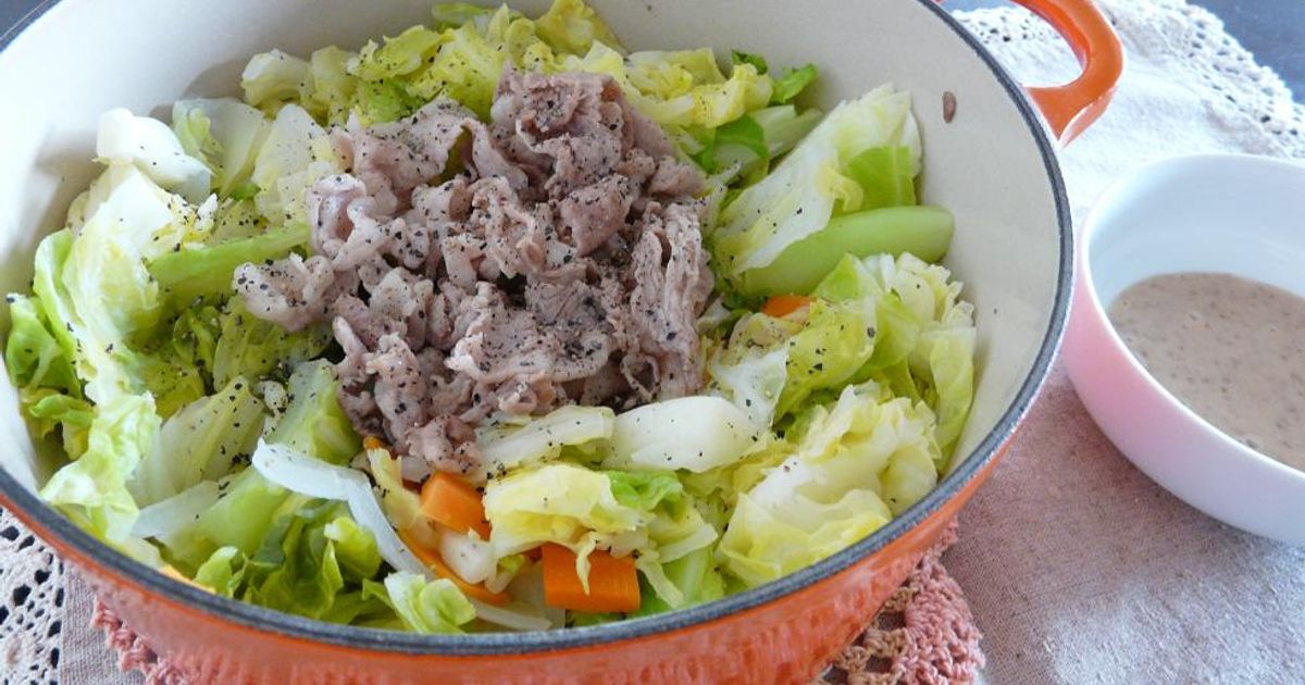 千切りキャベツの豚しゃぶ鍋 - 魚料理と簡単レシピ。