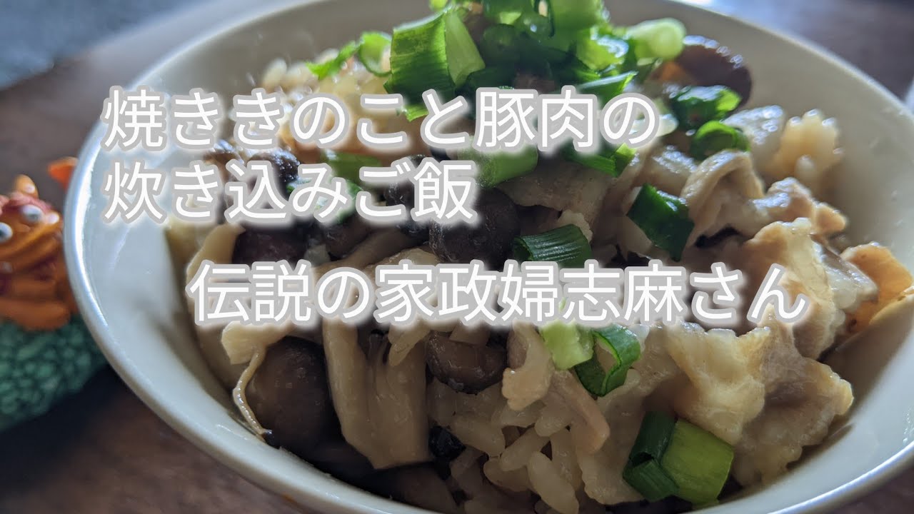 伝説の家政婦志麻さんの 焼ききのこと豚肉の炊き込みご飯- YouTube。