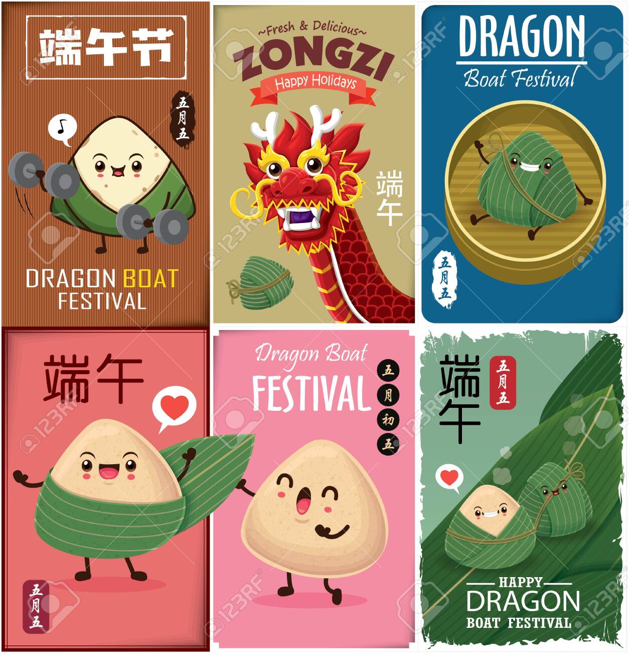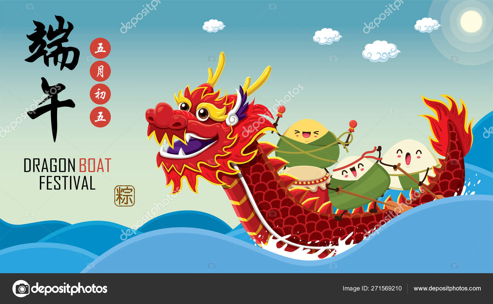 ビンテージの中華ちまきは漫画キャラクター ドラゴン ボートです ドラゴン ボート祭りイラスト キャプション ドラゴン ボート祭り ストックベクター©Donnay 271569210。