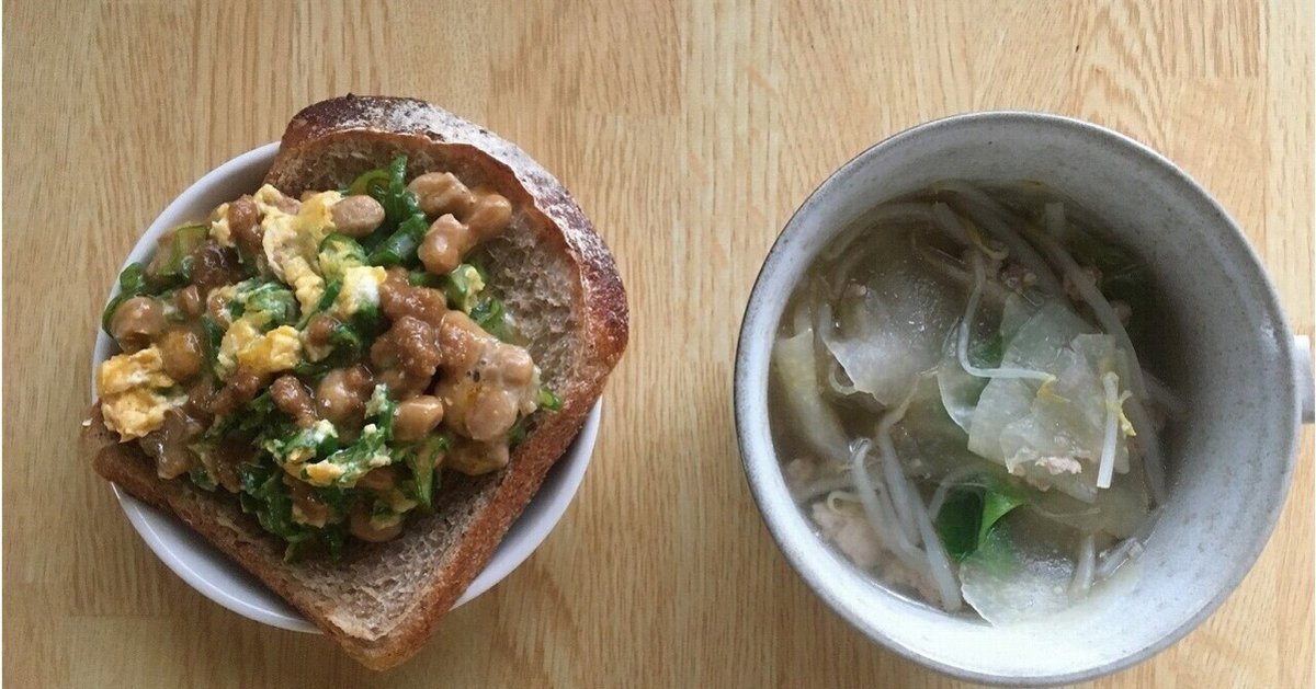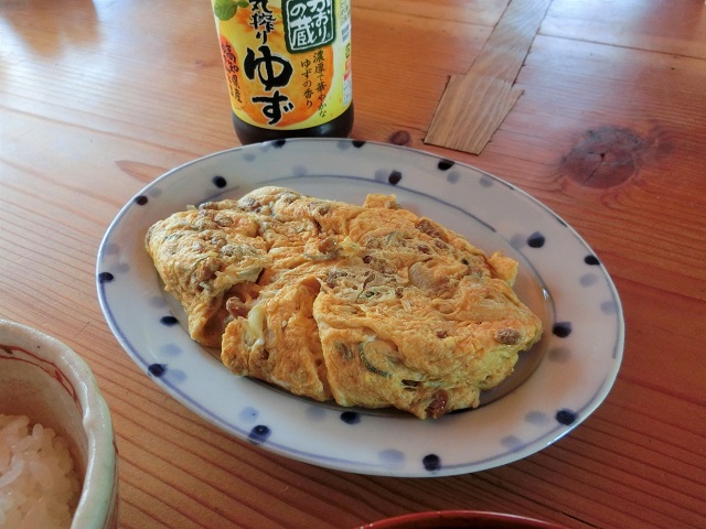 朝ご飯👀🥣 時々思い出した時に作る 石田ゆり子さんレシピの納豆オムレツ ネギのみじん切りをたっぷり入れて バターでふんわり焼いて🧈 ポン酢でいただきます フライ返しでざっくり返しながら焼くのがポイント 適当に返すくらいが。