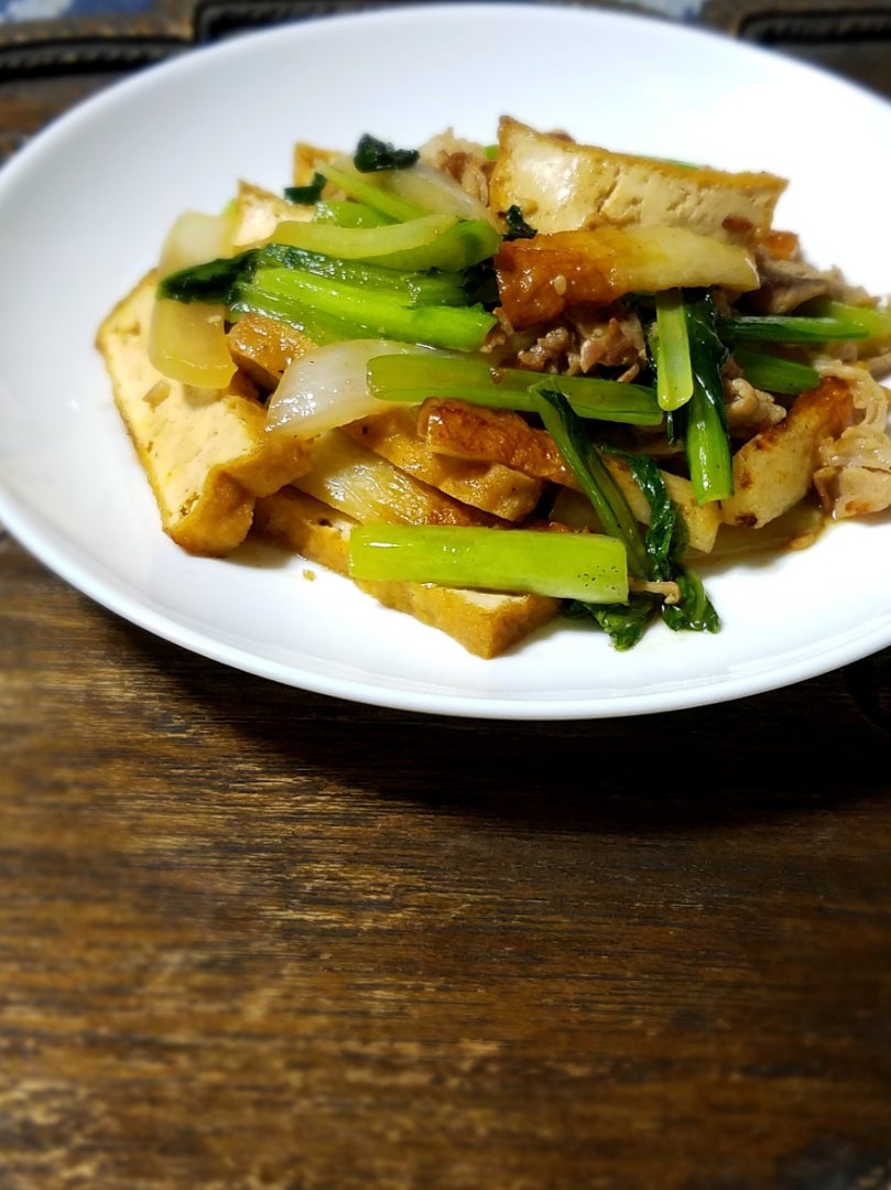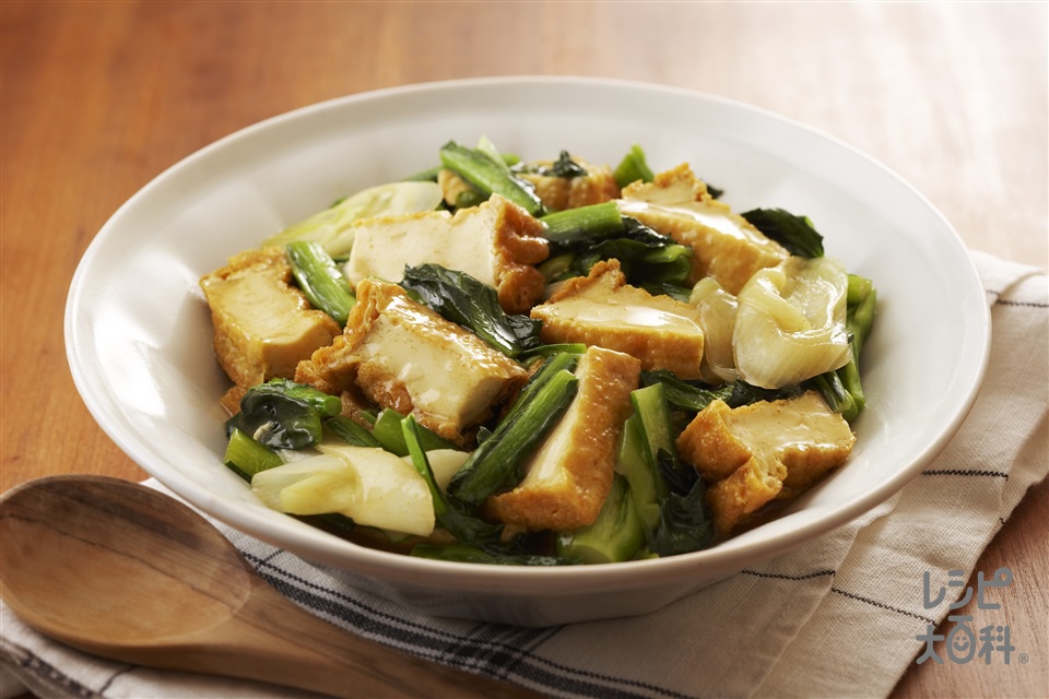 厚揚げでかさまし!あと1品に嬉しい『厚揚げと小松菜の炒め煮』。