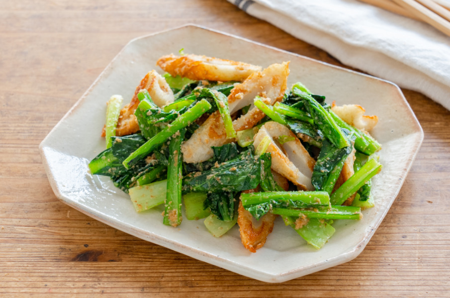 小松菜とちくわのみそバター炒め 作り置きやお弁当に◎コク旨おかずレシピ・作り方。