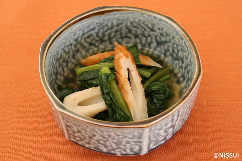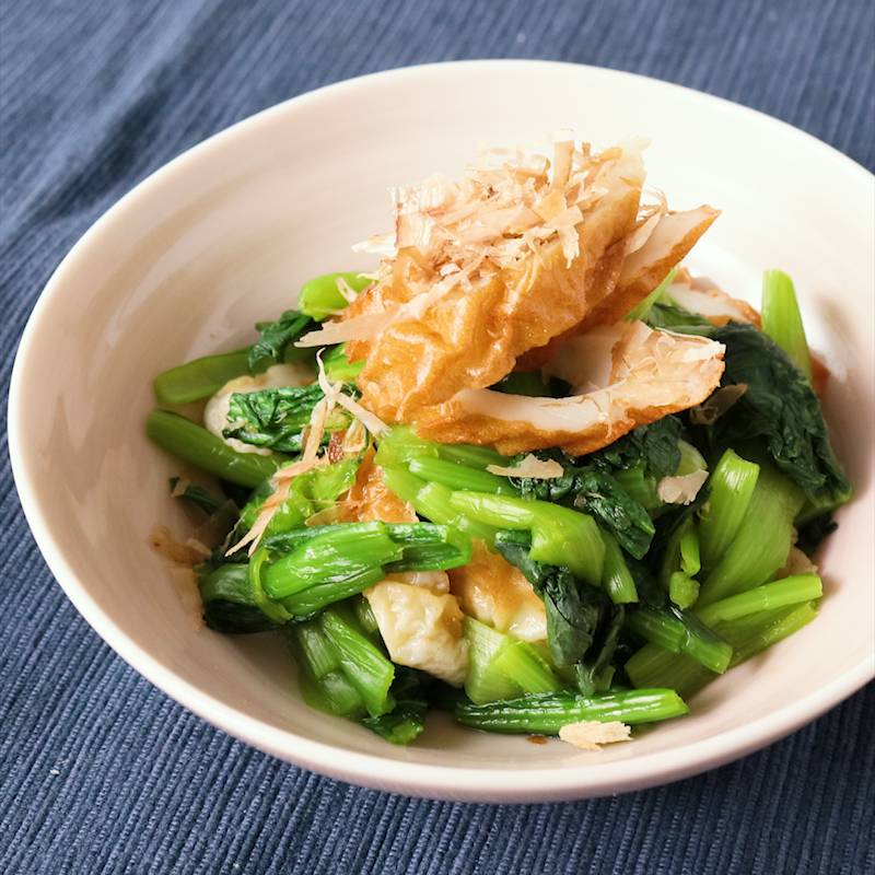 お揚げじゅわ〜のコツ! シャキッと小松菜と油揚げの煮浸し。