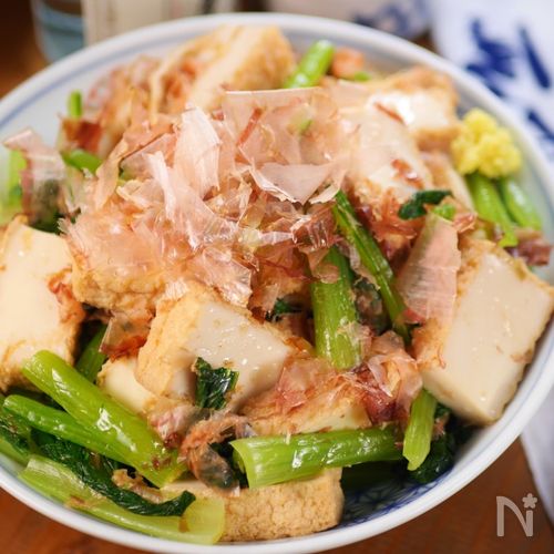 ヘルシー満足おかず🙆🏻♀厚揚げと小松菜のおかか和え😋。