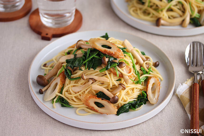 なすと厚揚げのみぞれ煮の献立 副菜:小松菜のごまよごし、汁物:ちくわコーンの冷やしみそ汁 献立・メニュー 味の素パーク たべる楽しさを、もっと。