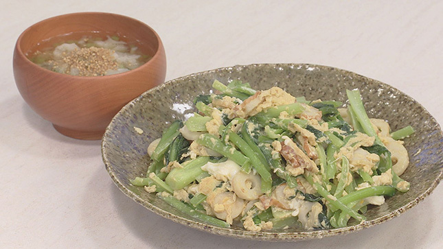 小松菜とちくわのふわ卵炒め 簡単副菜 あと一品に♪。
