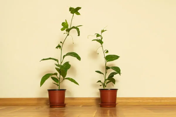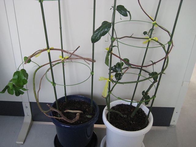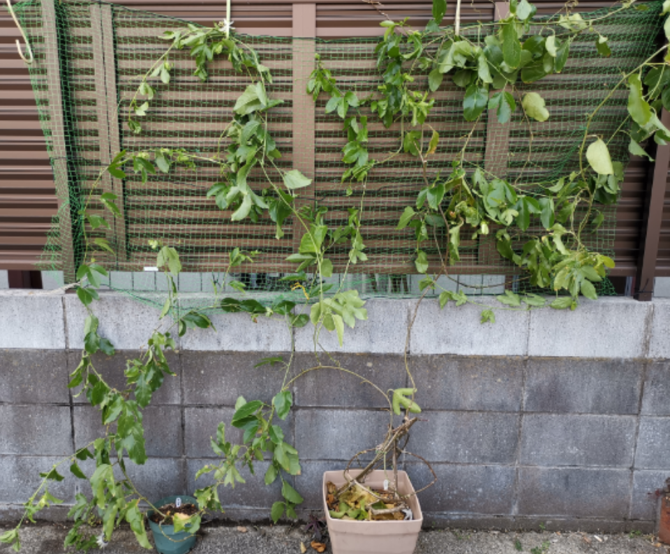 パッションフルーツの1年生が2鉢ですが、編んどん仕立てで1m位 園芸相談Q&Aみんなの趣味の園芸。