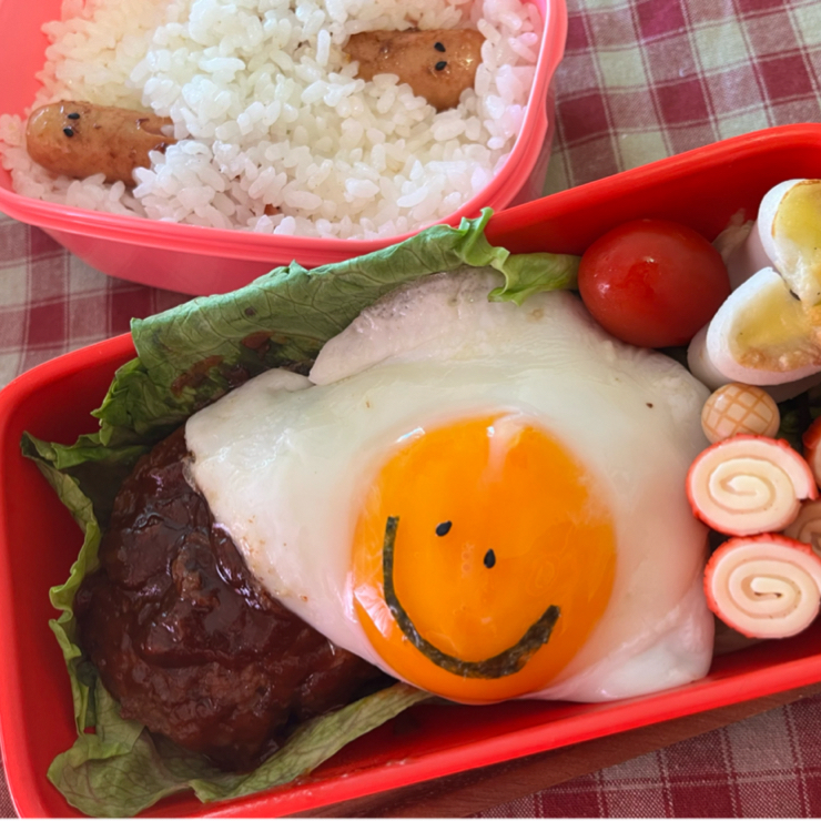 ロコモコ丼ハンバーグ弁当 アンパンマンの目玉焼きが可愛いお弁当🍳 ハンバーグに目玉焼きが加わると嬉しさが倍増しますね✨みなさんもぜひ参考にしてみてください😋おはようございます * きょうのお弁当さん🍱🍴 * 『ロコモコ丼。