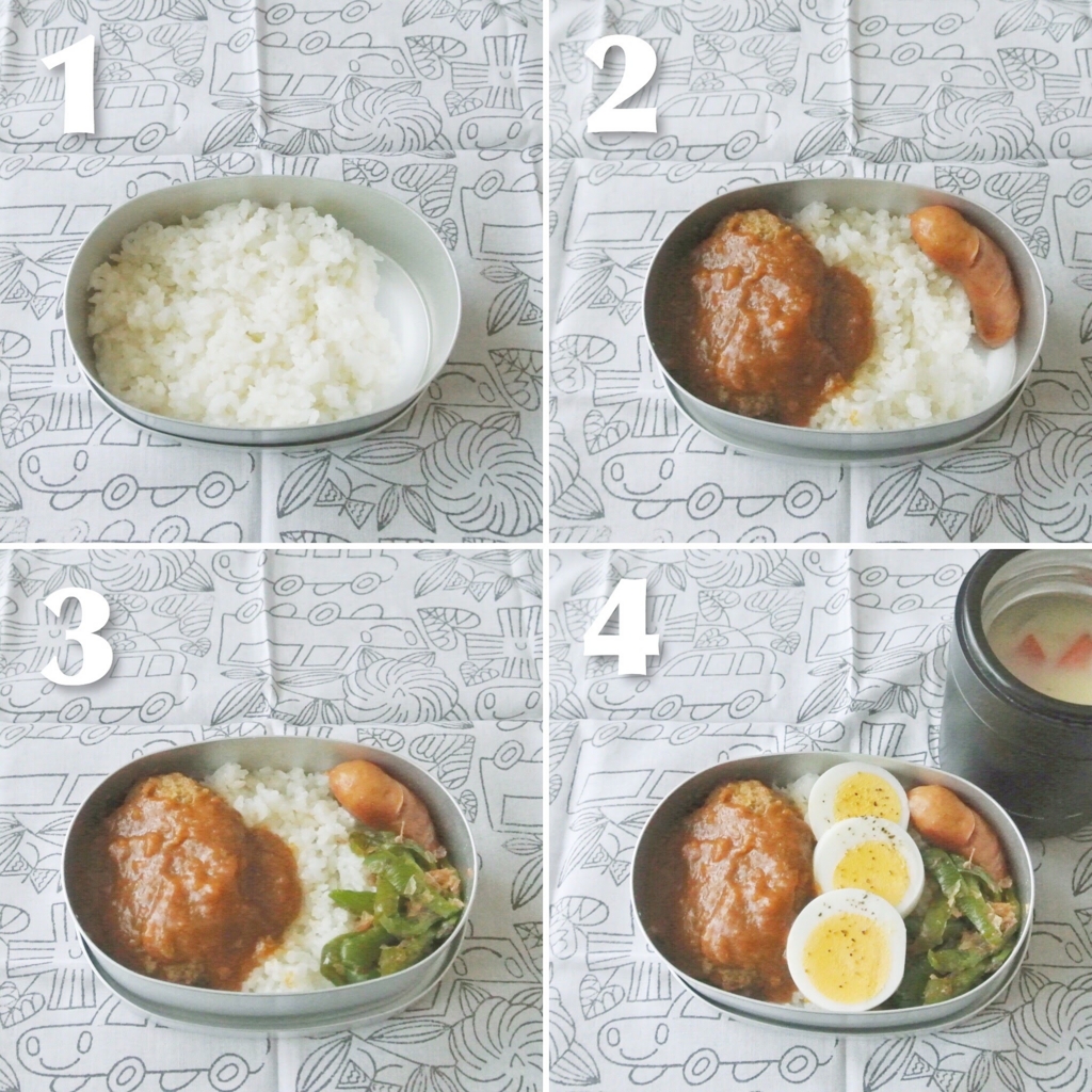息子弁当 お弁当にロコモコ丼を詰める時! ロコモコ丼弁当 。と、初デビュー!?ワーママの、楽しんで!おべんと&おうちごはん。