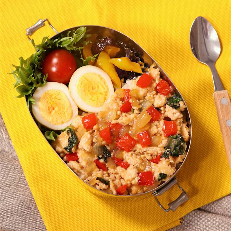 ボリューム満点な ロコモコ弁当 を作ろう!詰め方のコツも紹介!食・料理オリーブオイルをひとまわし。