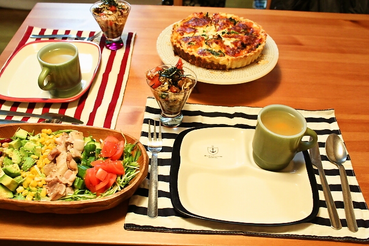パスタとキッシュ・♪カフェ風ワンプレートディナー おうちカフェ*そらのおうちカフェごはん*。