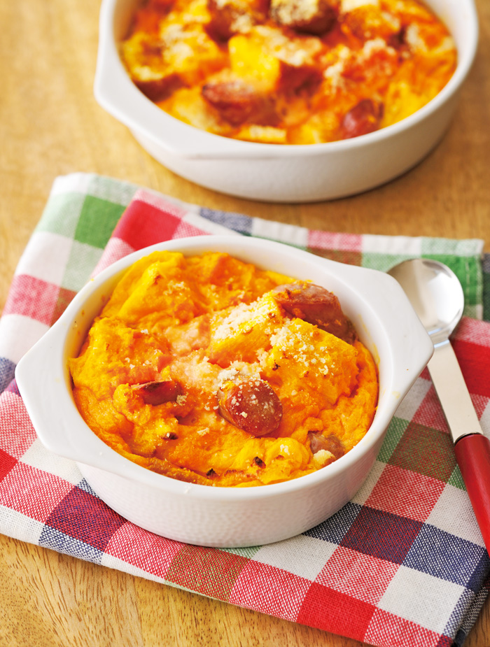 かぼちゃのキッシュ風の献立 副菜:ミニトマトとツナのサラダ、汁物:ごぼうとにんじんのスープ 献立・メニュー 味の素パーク たべる楽しさを、もっと。