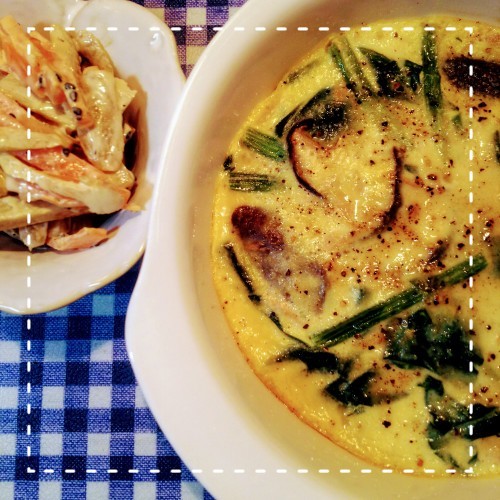 「かにとブロッコリーのキッシュ風」の太らない献立。