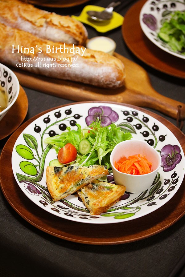 献立 ひなのお誕生日ご飯@2017。~小噺:キッシュ~ : るぅのおいしいうちごはん Powered by ライブドアブログ。
