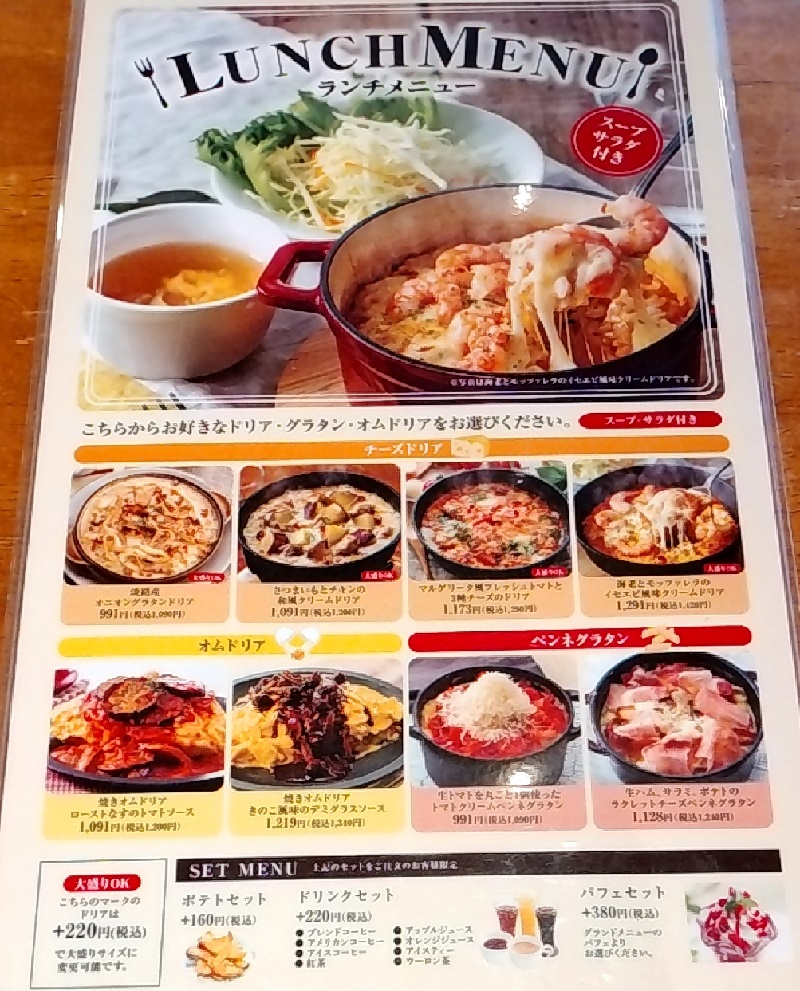 サンマルクホールディングス3395優待利用 「元町神戸ドリア」で「淡路産オニオングラタンドリア ランチセット スープ 、サラダ付き 」を食べてきました♪こだわりのドリアが食べられるお店!くきの楽しい投資生活。