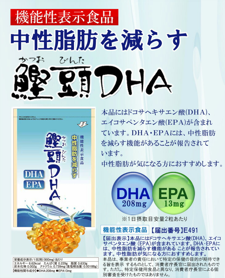 鰹頭DHA かつおびんたDHA 1ヵ月分 - こちら南国便。