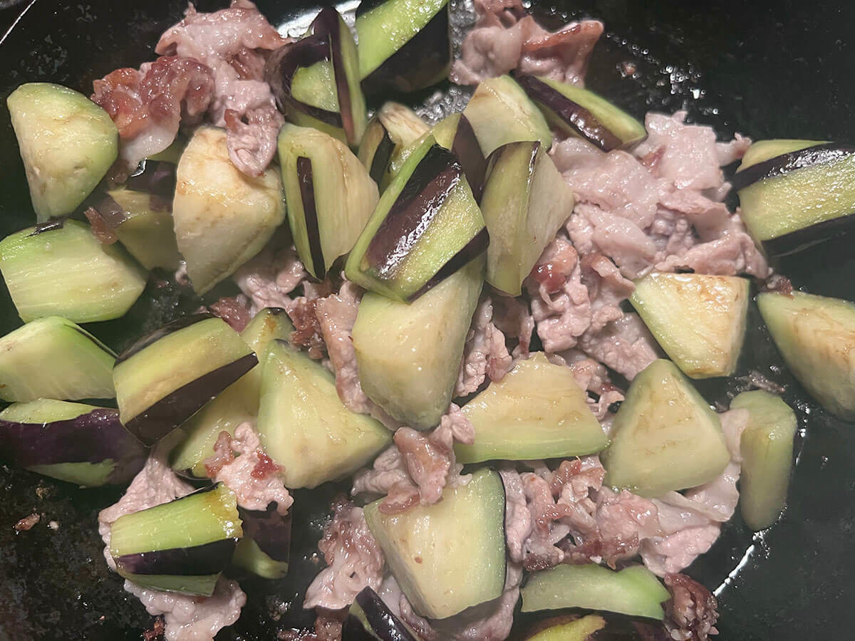 なすと豚バラのガーリックだしバタ炒め 山本ゆりさん。