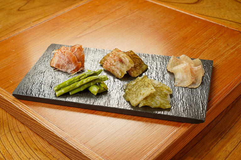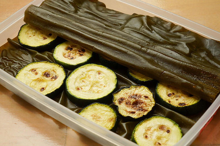 富山発 名物、昆布締め。昔ながらの知恵で魚、野菜、きのこをおいしく食す。