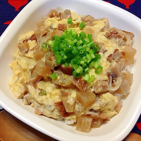 リメイク おでんの残りでふわふわつゆだく卵とじ丼。