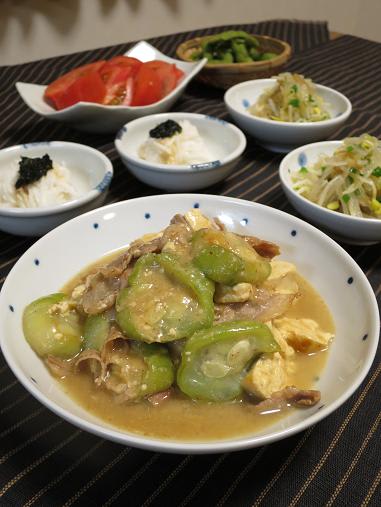 ヘチマの肉みそ炒め 沖縄野菜使用うちのごはん使用。