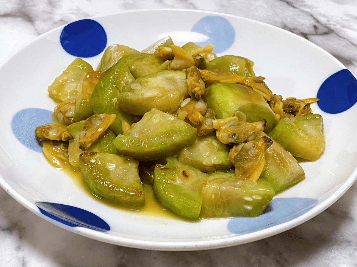 和歌山県産のヘチマで絲瓜炒蛤蜊 ヘチマとあさり炒め を作ったしょこ。