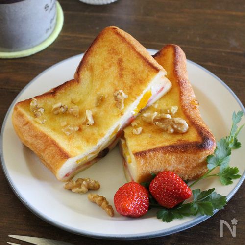 オーブンで焼くサンドフレンチトースト スイーツver.。