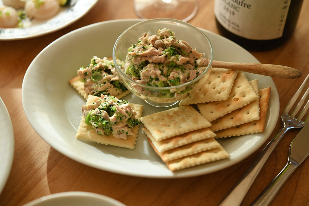 ブロッコリーのツナマヨディップ&クラッカーのレシピ:白ごはん.com。