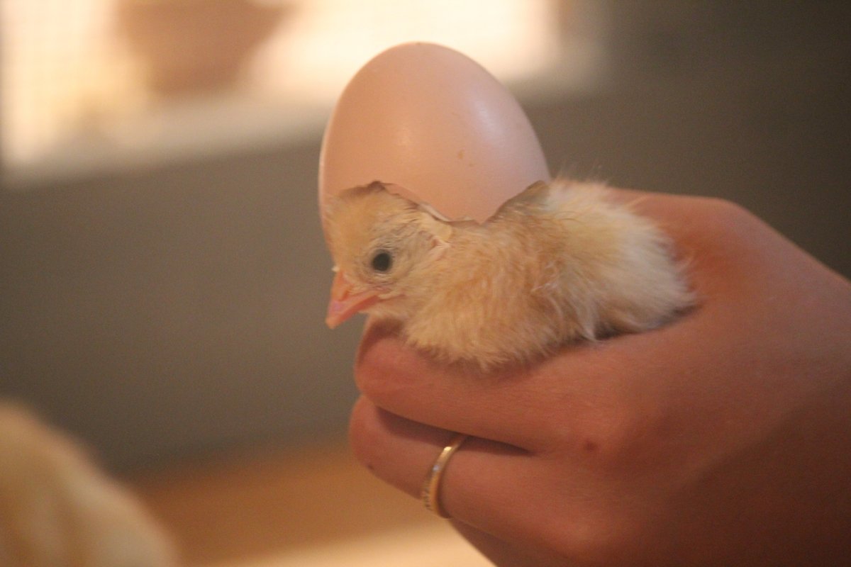 この卵を1ヶ月温めると・かわいいヒヨコが孵化しました。