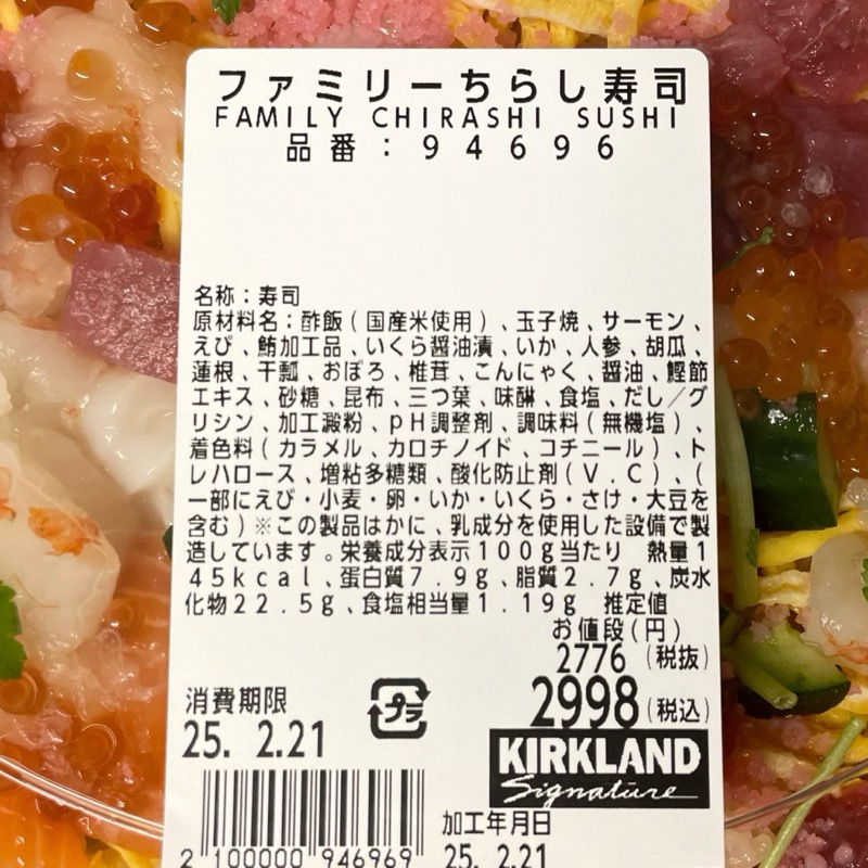 カークランド 海鮮漬けちらし寿司の最新価格や割引 口コミ :コストコで在庫番。