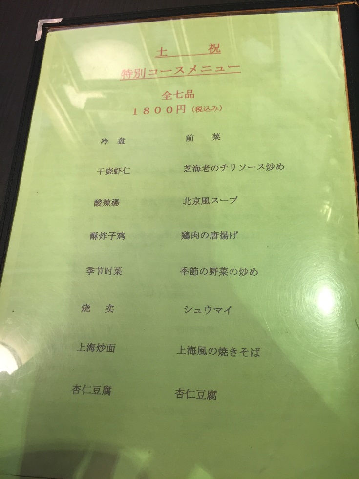 港区麻布台 中国料理 美林華飯店 BI RIN KA HAN TEN- メニュー例。
