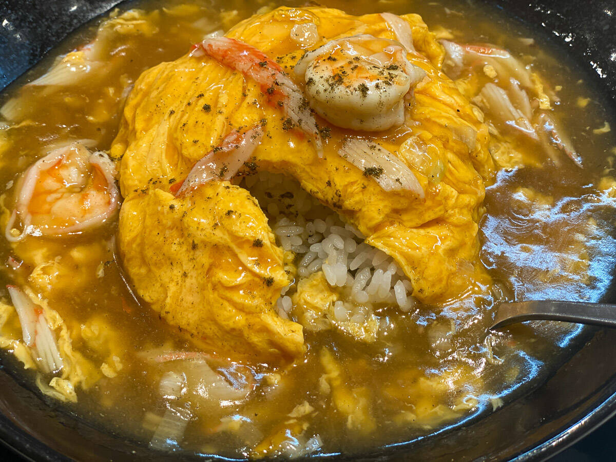 醤油あん天津飯にラー油をかけると3倍ウマくなるよ!餃子の王将B級グルメランチ紀行。