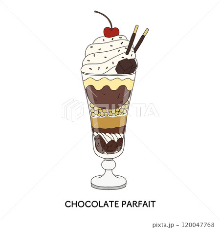 かわいいチョコレートパフェ 手描きのイラストのイラスト素材120047768- PIXTA。