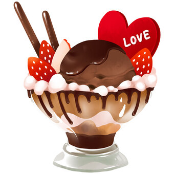 おしゃれセミリアルでかわいいチョコパフェイラスト・フリー素材なら「シンテリ」。