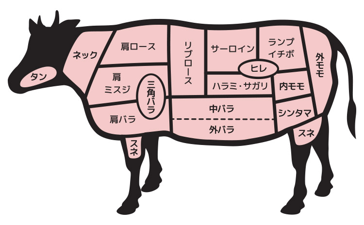 牛肉の部位とその特徴:基本の13種類と希少部位を解説 – 黒毛和牛 通販霞 KASUMI。