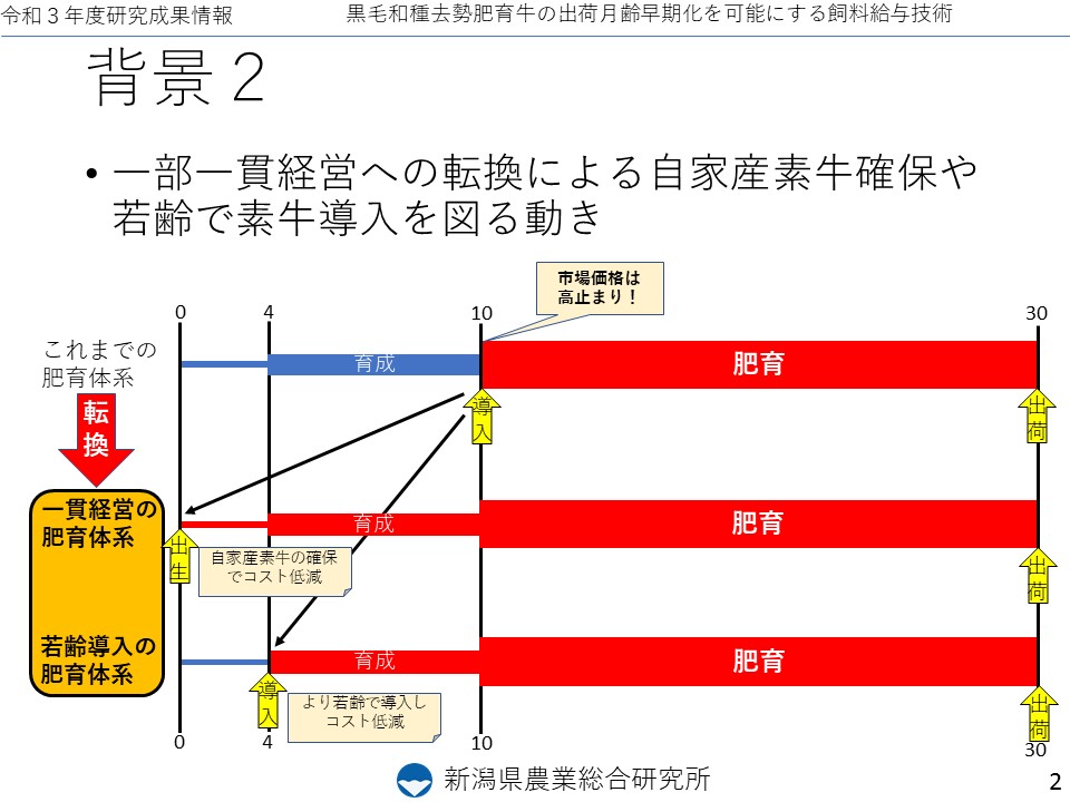 研究成果詳細解説 黒毛和種去勢肥育牛の出荷月齢早期化を可能にする飼料給与技術 - 新潟県ホームページ。