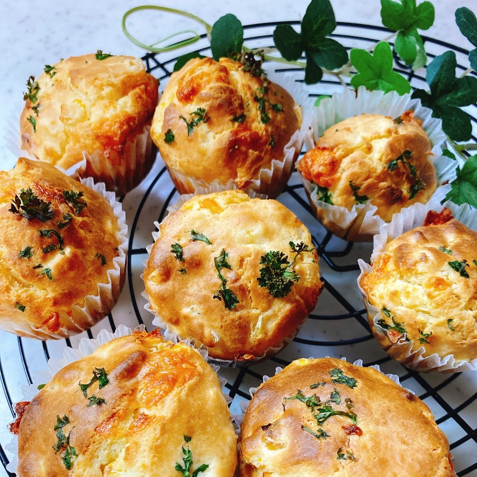 おかずマフィン 混ぜて焼くだけで簡単!ホットケーキミックスで手軽に!惣菜パンのような仕上がり♪macaroni マカロニ。