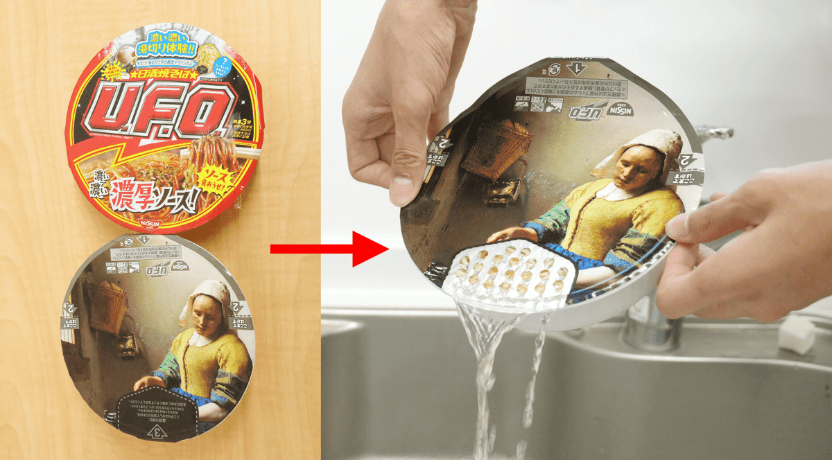 世界の名画がカップ焼きそばの湯切り "優雅な"コラボアイデアに反響 「天才ですか」Hint-Pot。