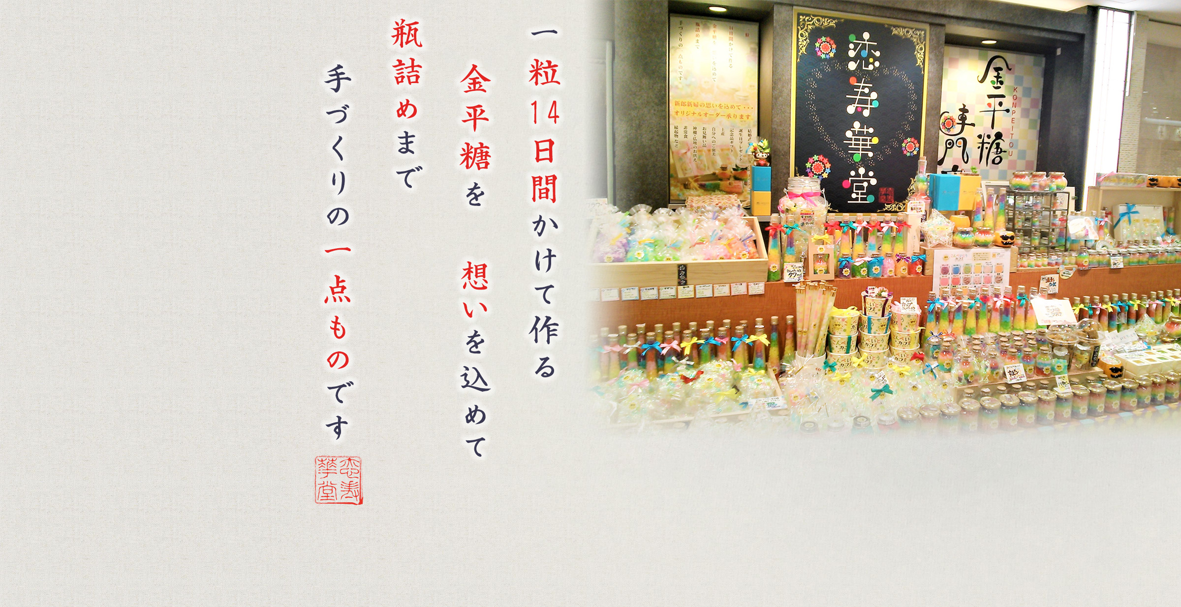 金平糖専門店 恋寿華堂恋寿華堂こんぺいとうカフェ金平糖専門店恋むすび焼ハチミツ珈琲ジャムconpeitou恋寿華堂通販サイト福岡金平糖ハチミツ煎餅結婚式引出物縁起物こんぺいとうコンペイトウ金平糖専門店金平糖。