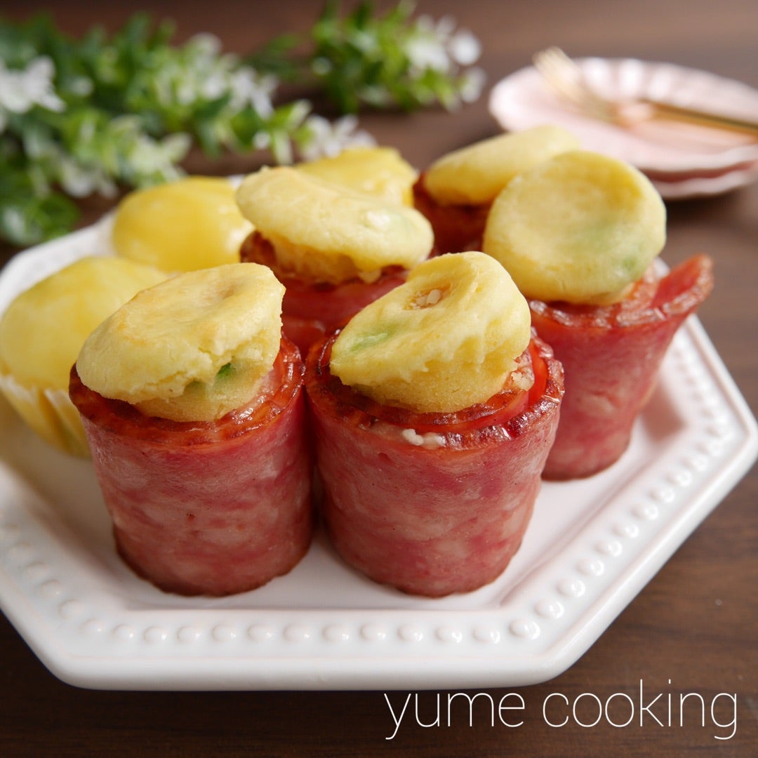 ふわふわ!米粉のお食事マフィンレシピ♪〜シャウ ベーコロン巻き〜夢のグルテンフリー・ヘルシースイーツレシピ。