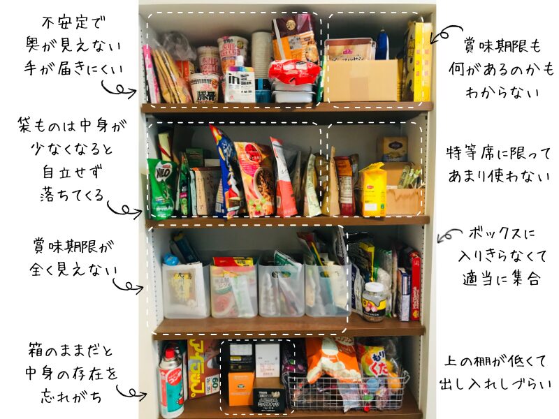 食品ストックの収納術買い過ぎや賞味期限切れを防止するアイデア実例HOUSTO おウチの収納.com。