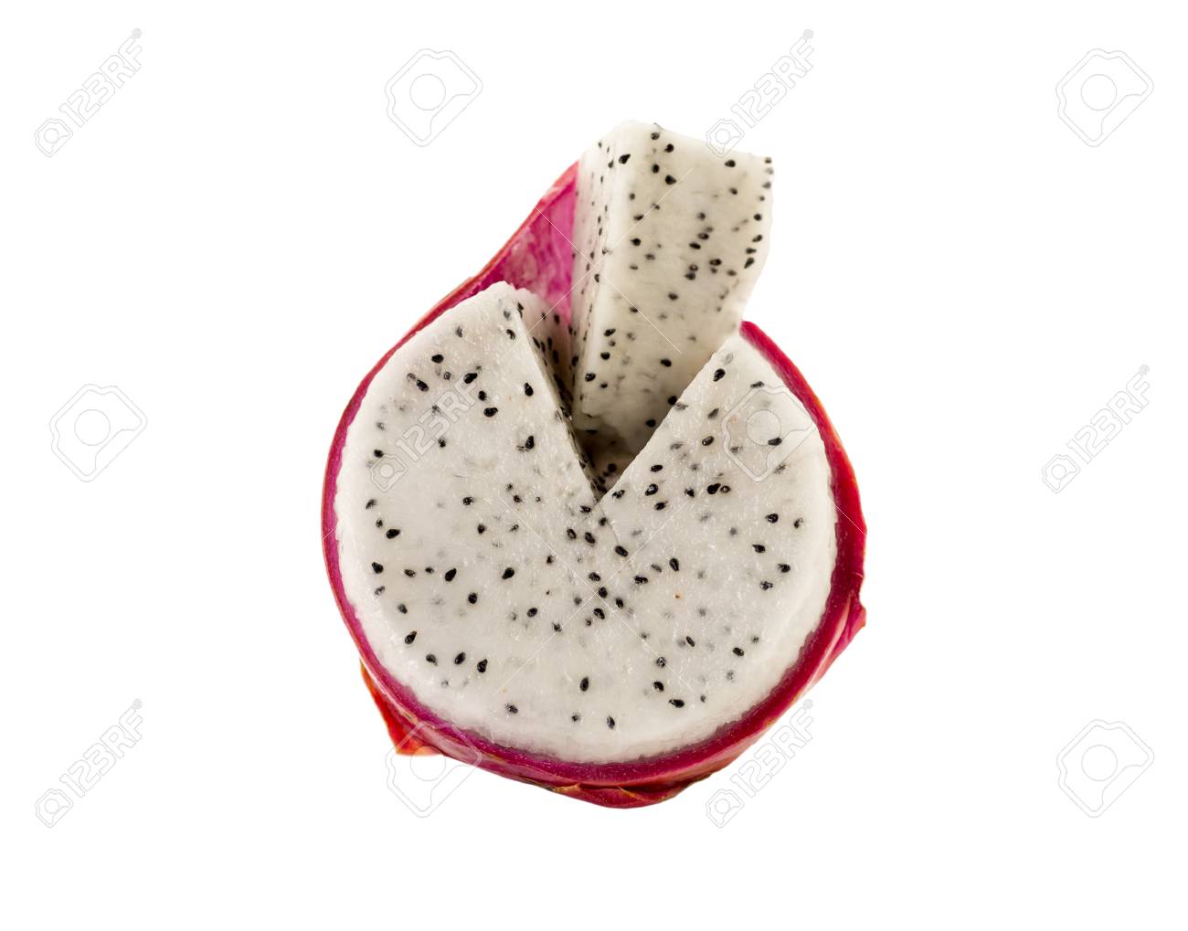 白い背景に白い肉と黒い種を持つジューシーなピンクのドラゴンフルーツ。の写真素材・画像素材 Image 209839602。